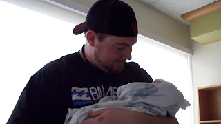 Here is the story.... I was due on April 13th, Kade was working out of state over the last five months so in order to have him here I asked my doctor if I could be induced on the 14th. I am really weird about dates and when my kids birthdays are. I had all these days I didn't want and I got what I wanted on both kids, lucky me :) Anyways Kade did get transferred back to Salt Lake the week Brooks was born, I am so grateful to have him here with us. So I went in on the 14th at 8am to get induced. My nurse was training another nurse so everything took twice as long, which was ok because it was nice to have two nurses helping with everything. They were awesome, their names were Julie and Julie haha. So they finally got everything going and then about an hour after the pitocin started I asked for my epidural. I didn't want to be in pain so I got it early. They put it in and then left. After about 15 minutes my left leg wasn't numb and I started feeling contractions. They hurt and it was really weird to feel them on one side and not the other. They got it fixed after about an hour and a half and then I fell asleep about an hour and a half later I woke up and felt like it was time to push. I was at a 9 so they called my doctor up. I pushed for about twenty minutes and then Brooks was here. We actually didn't have a name at that point. He came out screaming his guts out. When they put him on me he looked like Mia's twin, he stopped screaming when I started talking to him and it was so awesome to know that he really knows me. It was really crazy to be looking at him and know that he wasn't Mia. They took him and weighed him and did all his tests he passed with flying colors. Then they brought him to me and he was perfect. He nursed right away and was great at it, different from Mia. Then Kade was holding him and said his name is Richard Brooks. We had talked about this name before but we had taken it off the list. It was in my top three so I was so glad that he brought it back. Brooks is after...yep if you know me at all you know I have an obsession with Garth Brooks that can't be explained. Garth is the reason that Kade and I are together so I thought it would be appropriate to name our son after him. It was amazing to have so much love for him right away, I wasn't sure how it was going to go loving two kids but it was as easy as loving the first one. Mia came by that night and she was in love with Brooks immediately. She loves him so much and gives him kisses and hugs as much as we will let her. We had many visitors in the hospital and appreciate all the love and support that our family and friends brought to us.