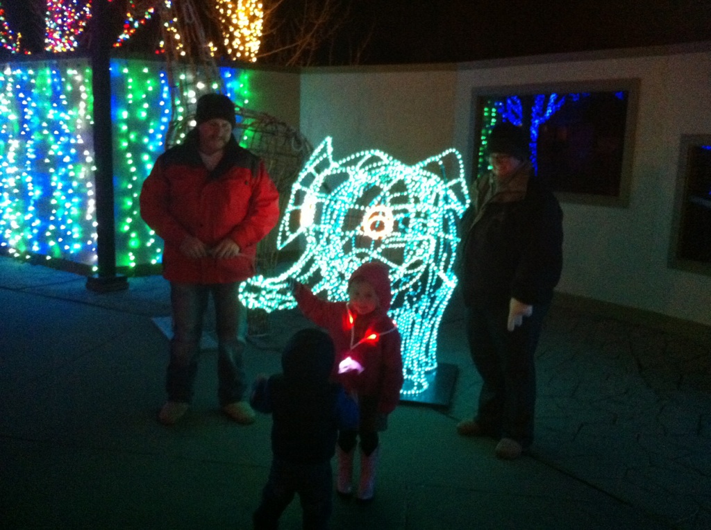 One night Kade was driving home from Elko and he called me and said lets go to zoo lights so we got the kids bundled up and went. First we went to Costa Vida for dinner and then headed to the zoo. We called Kade's parents and invited them to come with us. We had a great time just wish it was warmer :)